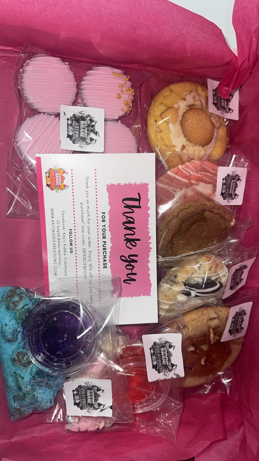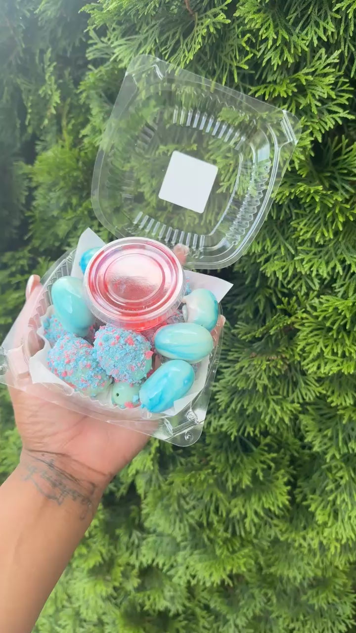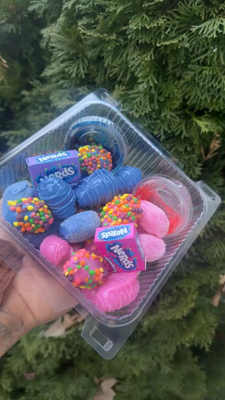 Candied grapes, peach cobbler eggrolls, and sour gushers! Everything is so delicious! Grapes were Juicy and the eggrolls were cooked hot to order!